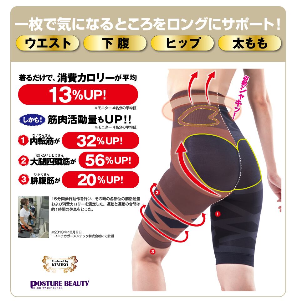 ポスチュアビューティ ハイウエストインナー ブラック ベージュ 1枚 シェモア インナー カロリー消費 ダイエット 姿勢矯正 下腹 ヒップライン