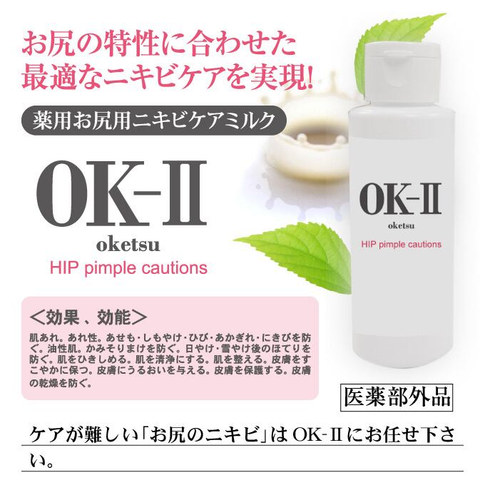 おしりニキビ 乳液 あせも 肌荒れ ブツブツ ザラつき ヒップケア 背中ニキビ 薬用 医薬部外品 パラベンフリー アルコールフリー OK-II お尻ケア 美尻 水着 脱毛 毛穴 毛穴引き締め 乾燥 保湿 ボディクリーム ボディミルク 乳液 日焼け止めクリーム