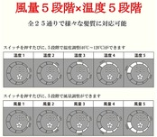 温度5段階(40℃、60℃、80℃、100℃、120℃)×風量5段階×2モード