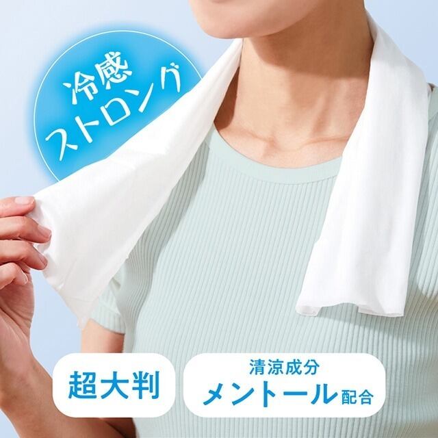首かけすればひんやり冷えきもちぃ〜!冷感ストロングな特大シートでスッキリ爽快!