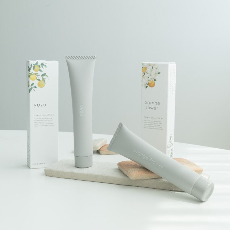ゆずエッセンシャルオイル(天然芳香成分)、シアバター 25%、トウキンセンカ花エキス、カミツレ花エキス、アロエベラ葉エキス、ハチミツ(すべて保湿成分)配合。