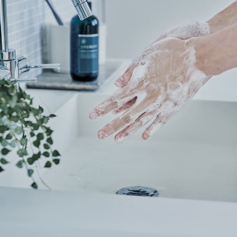 手のひら、またはお湯を含ませたタオルやスポンジ等に適量取り、泡立ててから洗い、よくすすいでください。