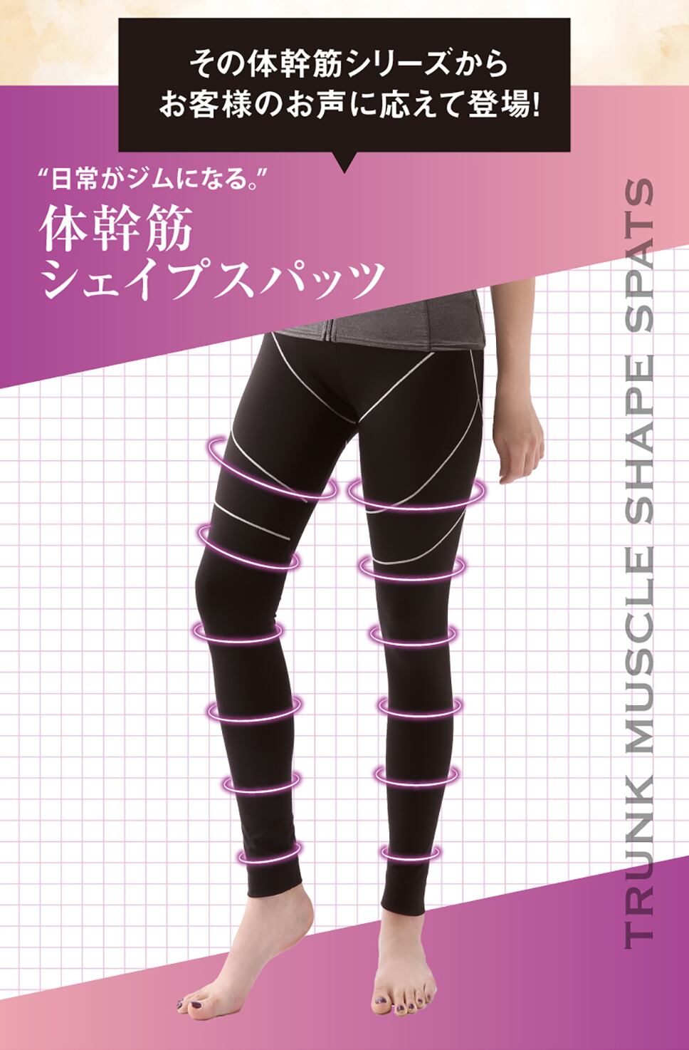 履いて動くだけで体幹筋を刺激し、効率的なシェイプアップをサポートする高機能フィットネススパッツ。