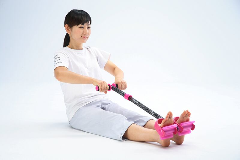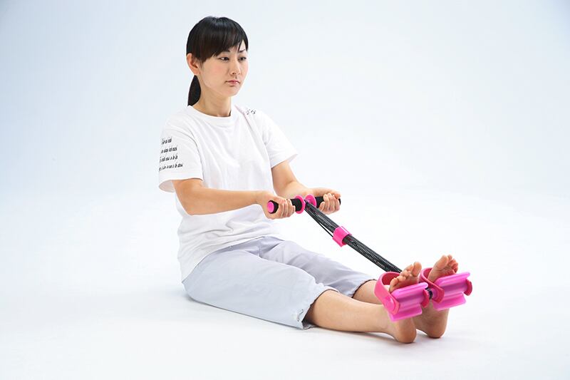 ハンドルを両手で握り、ペダルに足を固定して座ります。背筋を伸ばした状態で、ボートを漕ぐような動作でスプリングを伸縮させてください。1日10〜15分程度、ご自身のペースで無理なく行うのが効果的です。