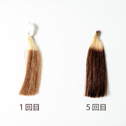 1回で白髪を染め上げるタイプの染毛剤ではありません。使用を続けることで、徐々に髪色を整えていくカラートリートメントです。