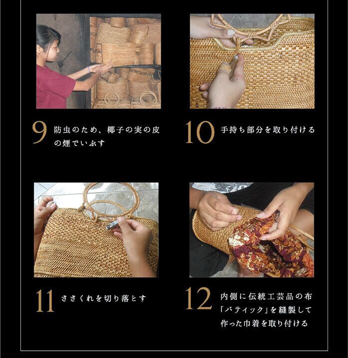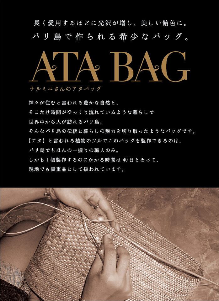 インドネシア・バリ島の熟練職人「ナルミニさん」が一つ一つ丁寧に編み上げた、希少なアタ素材のハンドメイドバッグです。