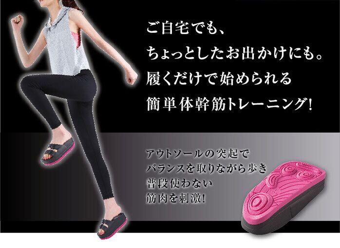 履くだけで体幹筋を刺激し、効率的なボディメイクをサポートするシェイプアップサンダル。